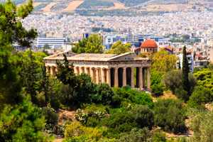 We left the Acropolis and headed to a knoll overlooking the Agora, or old market place. Here we sat in full sun while Ania explain in exquisite detail the purpose of the Agora and the nature of ancient Greek marriage. She then led us into the Agora where we saw a restored museum, a vast amount of ruins consisting mainly of foundations and the rather stunning Temple of Hephaistos dating from 158 BC.